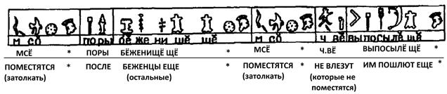 Затем: Я ТЕБЕ ГРОЗНЕ ГОРЬЧЕ ПЕКЛОНЪ ВОИНЬ ОВРАГИ ЖЕНИЕ НА УБОЙ РУСЬ, ВСЕ ВЫХОДИТЕ.