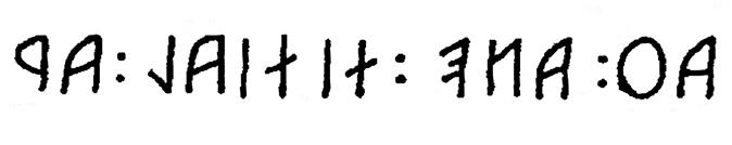 Сверху написано слово ШЛЮНА (слюна), которое также читается, как НАШЛЮ. Состоит оно из «Н», «А» и лигатуры