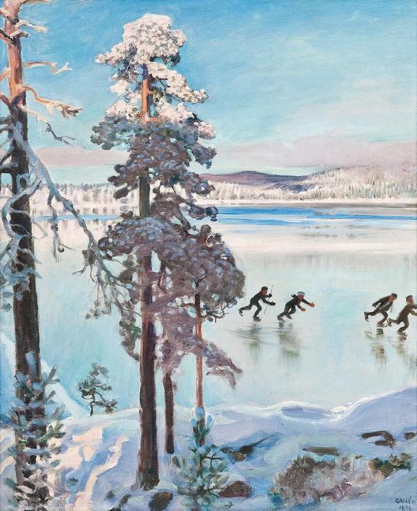 А. Галлен-Каллела. Конькобежцы на озере Руовеси