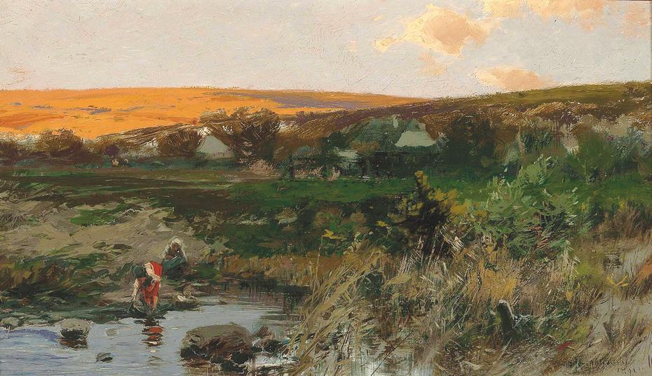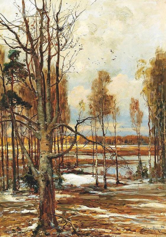 Ю.Ю. Клевер. Ранний весенний пейзаж с буковым деревом на переднем плане