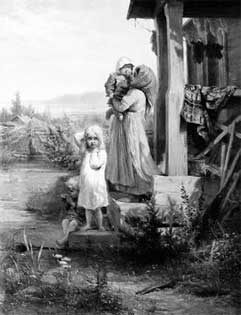 Часто собирались у нас дома слепцы, странствующие по селам, пели духовные стихи о прекрасном рае, о Лазаре, о Миколе и о Женихе, светлом госте из града неведомого.