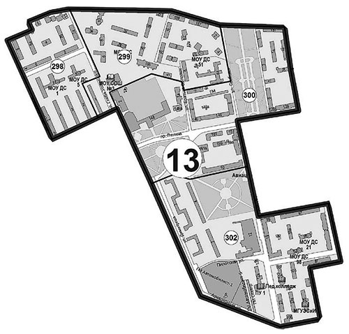 Карта избирательного округаИзбирательный округ состоит из избирательных участков. Каждый округ имеет свои административные границы с указанием улиц и домов, входящих в данный округ.