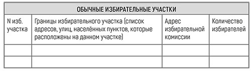 Информацию об избирательных участках, комиссиях на них, удобно приводить в виде таблиц с официальными данными из сайта ЦИК (центральная избирательная комиссия). Данная информация обновляется в ГАС «Выборы» ежегодно. Получить такие сведения сложно, но возможно. В крайнем случае придётся довольствоваться косвенными, общими данными. Стоит также взять сведения по количеству квартир или домовладений. Эта информация очень важна для формирования финансового плана кампании и оценки ресурсов.