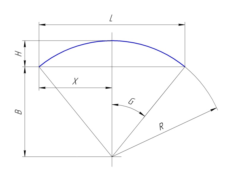 От центра хорды до точки по оси Х-Х = 3000,0.