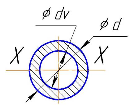 .sv=dv*dv*Pii/4… Площадь по внешнему контуру.