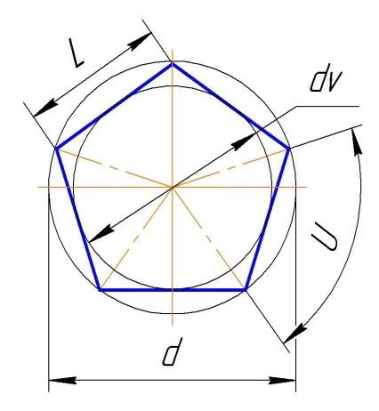 S= ( Sg * Rv * n ) / 2; S= ( 58,77852523 * 40,45084972 * 5 ) / 2; S= 5944,103227…