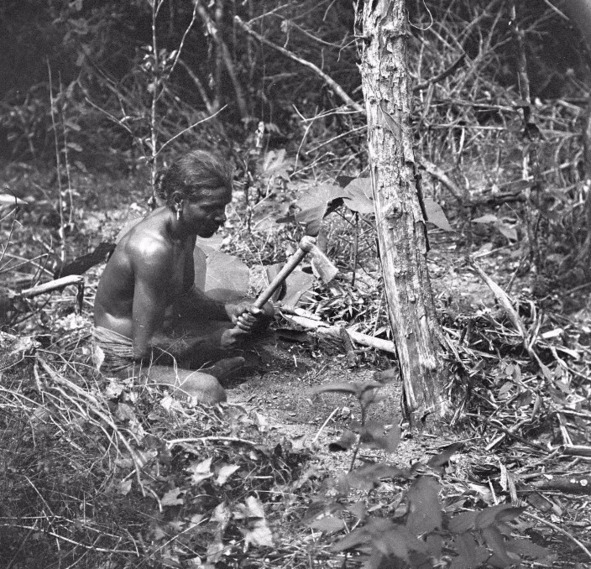 Sometimes close collaboration is required by several men to butcher and carry the game back home. Large parties formed if the resources were plentiful as for example when the trees were heavy with “mora” (Niphelium longana) and tamarind berries (Dialium ovideum).