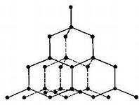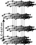 В пластинах графита атомы углерода так же выдерживают этот угол, поэтому пластины не плоские, а объёмные, три атома шестиугольника находятся ниже плоскости пластины и три атома располагаются выше плоскости пластины. Это именно то, что мы видим на схеме строения алмаза сбоку, только следующий слой у графита находится гораздо дальше, чем у алмаза.
