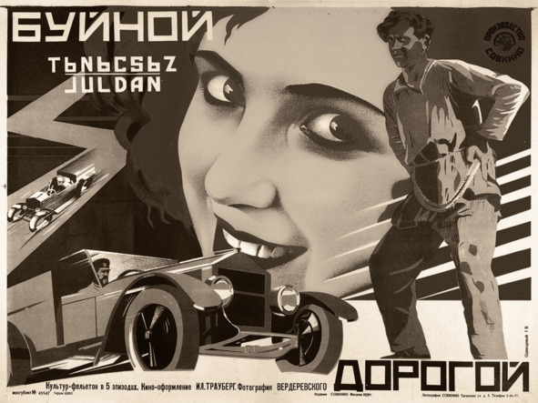 Политико-просветительский фильм «БУЙНОЙ ДОРОГОЙ», 1928, Ленинградская фвбрика «Совкино». Режиссер Илья Трауберг, оператор Иван Вердеревский. актер Александр Жуков. Культурфильм (политико-просветительский фильм) об автомобилях и плохих дорогах в СССР. Название пародирует голливудскую ленту «Буйная дорога». Люди. Машины, Дороги.