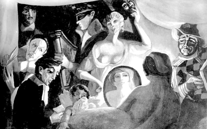 Все герои нашего повествования изображены на картине Сергея Судейкина «Моя жизнь» («Кабаре “Приют комедиантов”»), созданной в 1916 году. Он сам изображен в костюме Арлекина. В черном костюме доктора Дапертутто – Михаил Кузмин.