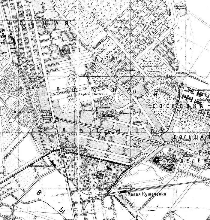 В расширительное понятие «Лесного» в то время, кроме Малой и Большой Кушелевки, в начале XX века входили также Сосновка, а нередко и Гражданка. «Под названием „Лесной“ петербургская публика подразумевает дачный район в 6 верстах от Петербурга по правой стороне Выборгского шоссе, – сообщал „Путеводитель по дачным окрестностям г. Петербурга на 1903 год“. – Близость к Петербургу окупает те неудобства, которые приходится претерпевать дачникам из-за отсутствия чистой, здоровой воды для купания и скученности построек…» А спустя двадцать лет, в 1923 году, историк П.Н. Столпянский отмечал в своей книге «Дачные окрестности Петрограда», что Лесной является «обширным дачным районом», который делится на следующие части: Большая и Малая Кушелева, Гражданка и Сосновка.