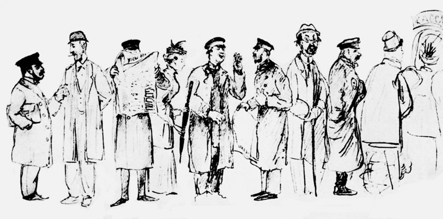 Утром у кассы Мариинского театра. Рисунок М.В. Добужинского