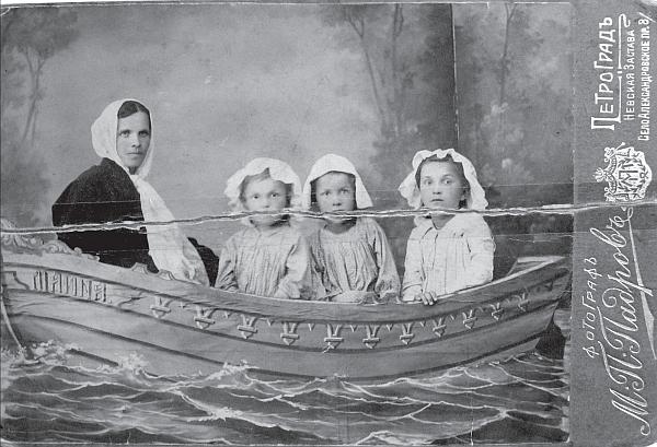 Семейная фотография, сделанная в начале ХХ в. в мастерской М.П. Падрова по адресу: «Невская застава, село Александровское, 8». Из семейного архива Е.А. Сафроновой (Мясниковой)