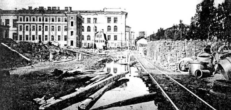 Строительная площадка перед Механическим павильоном. Фото начала XX века