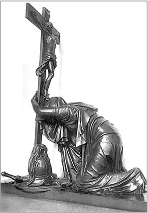 Новосильцева похоронила своего единственного сына в фамильном склепе Новоспасского монастыря в Москве. Рядом она заготовила место для себя. Над могилой сына она поставила памятник – бронзовую плачущую фигуру, выполненную по проекту выдающегося скульптора В.И. Демут-Малиновского. Памятник, который искусствоведы считают шедевром монументального искусства, сохранился до сих пор, несмотря на все зигзаги судьбы Новоспасского монастыря после революции. В нем во время Гражданской войны был концентрационный лагерь, с 1935 г. монастырем распоряжалось хозяйственное управление НКВД. В 1990 г. в обитель вернулась монашеская жизнь…