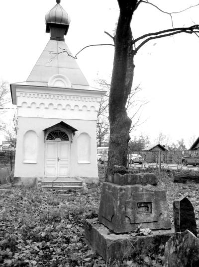 Сохранившийся постамент бывшего памятника Александру II у часовни Александра Невского в Мурино. Фото автора, 2006 год