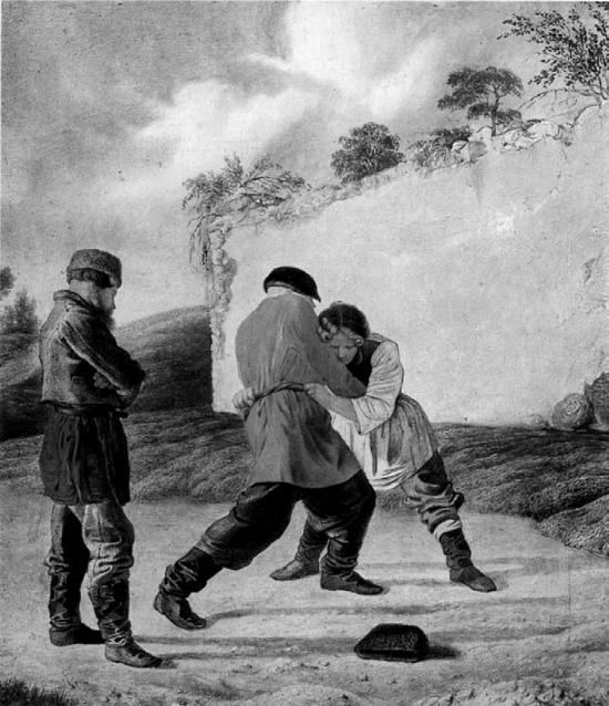 Впрочем, надо сделать краткий экскурс в историю. Как известно, спортивное значение борьбе стали придавать со времен Древней Греции. Атлет Тезеус разработал первые правила спортивной борьбы. Победителем считался тот, кто трижды бросит соперника на землю. Наносить удары руками и ногами запрещалось: уже тогда бокс существовал как самостоятельный вид спорта. У римлян борьба стала одним из популярнейших видов спорта, а чемпионы-борцы почитались как народные герои. В Древнем Риме борьба демонстрировалась в сочетании с кулачными боями, а в боях гладиаторов, многие из которых в совершенстве владели приемами борьбы, – с вооруженным боем.