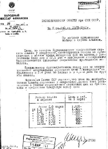 «Цены, по которым Наркомцветмет предлагает скупать алмазы у старателей, проектируются исходя из существующих в данное время импортных цен на алмазы, с увеличением этих цен в 13,5 раз…