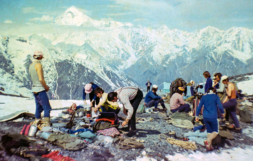 Последний отрезок пути брели под дождём по дороге пешком, попутного транспорта не было. Возле Стур-Дигоры встретили идущую навстречу машину с нашими – альпиниаду свернули из-за полного обвала погоды. Но мою палатку оставили на поляне, пришлось тащиться дальше. Саша молодец, меня не бросил, пошёл со мной. Добрели до нашей стоянки на поляне Таймази. Мокрые, замёрзшие, усталые; поляна залита водой, палатка в луже, темно, холодно, дождь, ветер. Тоска. Побрели уныло вверх на базу ростовских альпинистов попроситься погреться. А там… Свет, камин, тепло, уют, горячий чай. Приняли как родных. Раскочегарили сауну. Парились всю ночь, прыгали прямо с порога сауны в хрустальный ручей. Кто-то сказал, что Балыбердин и Мысловский взошли на Эверест. Стало ещё радостнее. Может быть, это была лучшая ночь в моей жизни. Кто знает…