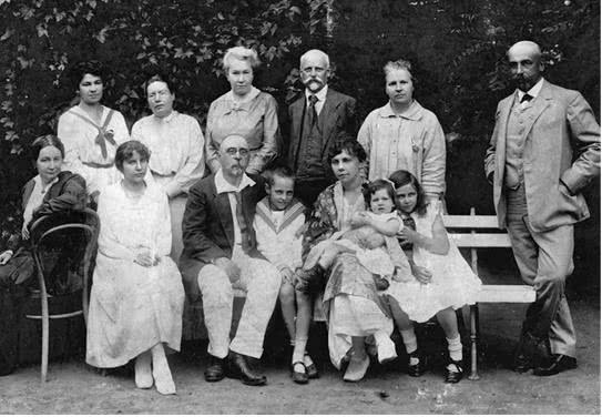 Бабушка (на руках) с семьёй, помощниками и друзьями. Большие Струги, 1917 год