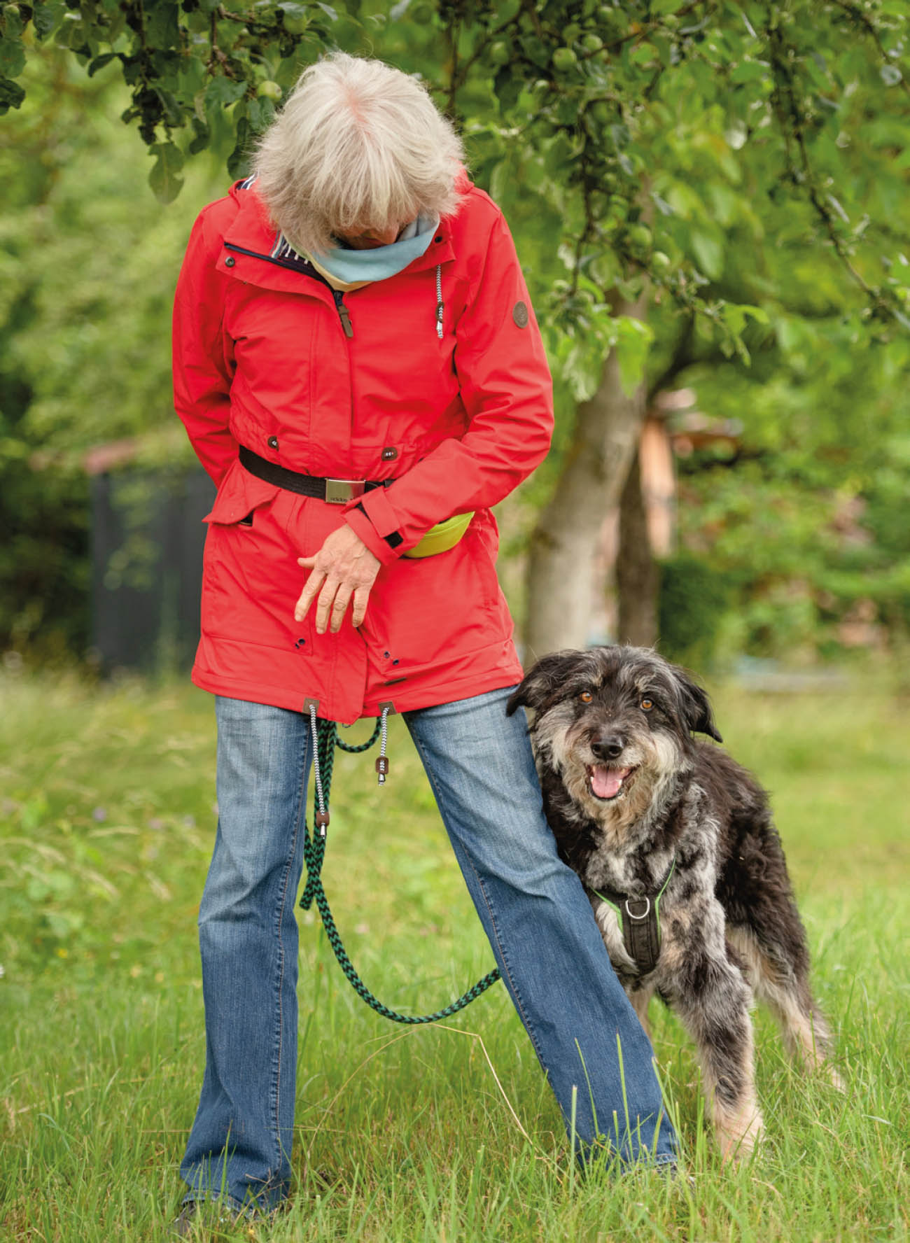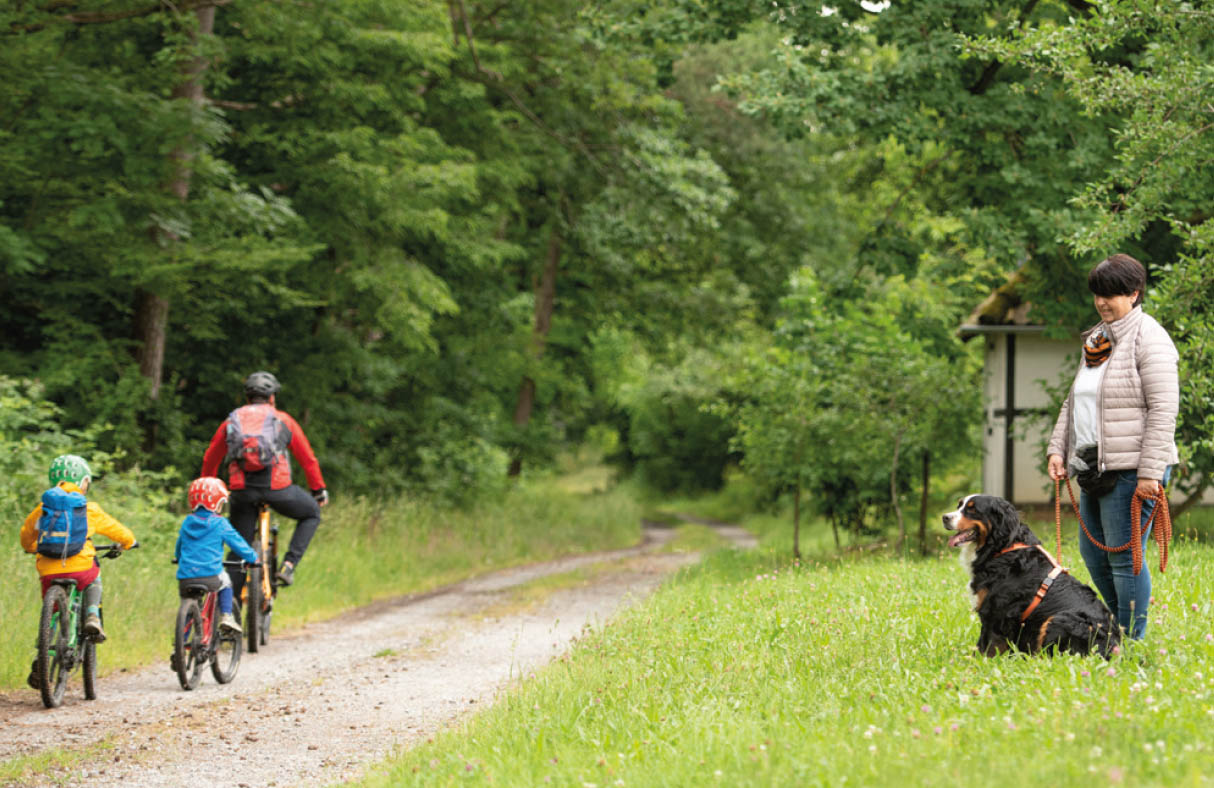 Ideal ist daher, die Gassirunden so zu gestalten, dass ein sensorischer Input über alle Sinne in für den jeweiligen Hund angemessener Dosis erfolgt. „Den Hund Hund sein lassen“, etwas, was häufig propagiert wird, klingt erst mal toll und empathisch. Wenn wir bei unseren Runden jedoch ausschließlich das tun, werden wir in Bezug auf die Schwierigkeiten im Alltag nicht viel weiter kommen. Wir brauchen Interaktion, Kooperation und Kommunikation mit unserem Hund, vor allem unterwegs. Es geht darum, dass wir als Sozialpartner kommunizieren und Dinge miteinander unternehmen. Die Kommunikation sollte dabei in zwei Richtungen stattfinden: Einerseits müssen wir Menschen die Körpersprache und Handlungen des Hundes in den kleinsten Details wahrnehmen, verstehen, darauf eingehen und ihm gegebenenfalls helfen. Andererseits müssen wir ihm in Form von einigen wichtigen Signalen Verhaltensweisen beibringen, die für die gemeinsame Bewältigung des Alltags nützlich sind und den damit verbundenen Stress reduzieren können. Ritualisierte und routinierte Abläufe wie zum Beispiel, sich beim Vorbeifahren eines Autos an den Wegrand zu setzen, sich nach einem Abruf anleinen zu lassen oder sich auf Distanz hinzusetzen, können lebensrettend sein.