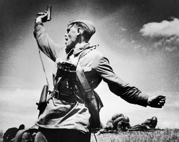 И снова, в бой солдат идёт-за Родину! За Сталина, вперёд!