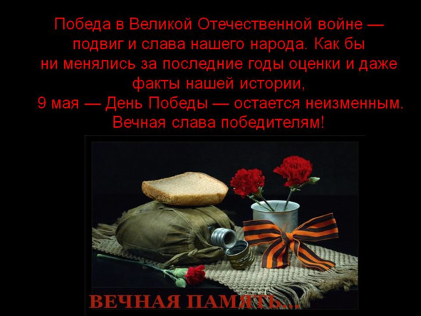 Всем Ветеранам,Наш Низкий поклон —Зато, что сегодня,Спокоен наш сон.Зато, что сейчас —Мы без страха живём.По миру шагаем ночью и днём.Зато, что сражались,,Когда то то с врагом —Смертельной пулей-И жарким Огнём.За мирную жизни —Вам низкий поклон