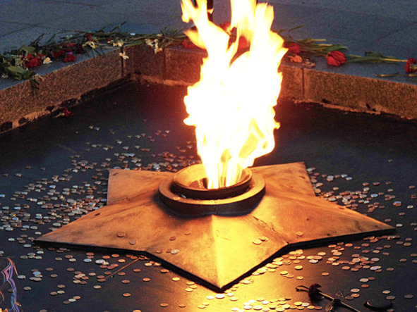 Здесь, у могильных плит, колени преклоню. А рядом две гвоздики алых положу. Щитом Вы встали на защиту в трудный час.И от врага- фашиста заслонили нас.Теперь мы благодарны Вам и память сохраним.Навек запомним подвиг Ваш, мы- не одни. И Родина Вас не забудет никогда. Костер вечного огня гореть будет всегда!