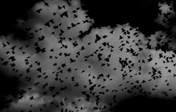 Вот он вылетел из леса. Над вороном кружит, периодически атакуя, какой-то мелкий хищник. Странно, ворон крупнее, да и сам хоть и падальщик, но не курица же! Уворачиваясь, пытается улететь от преследователя. Голос его не становится резче или тревожнее. Птицы скрываются за деревьями.