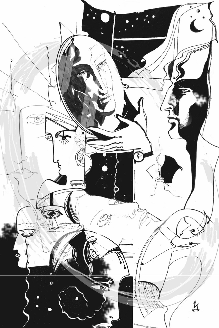 Да, когда смотришь в зеркало, то даже сам себе немного удивляешься, и это хорошо, человек обязательно должен себе немного удивляться, иначе он будет походить на неодушевленную вещь, – в зеркале, между прочим, вообще нет неодушевленных вещей, там мир замкнут на себя, самодовлеющ и уникален и плюс к тому еще отражен – его не пощупаешь, и вот он уже по одной этой причине начинает магически притягивать, как недостижимый идеал, а через стекло мир только растекается, как вода сквозь пальцы, создавая ощущение неустранимой, фатальной реальности, в которой столько скуки, предсказуемости, морального шаблона, дурной повторяемости и поразительного однообразия, что она скорее напоминает сон, нежели живую жизнь, и как в кино постоянно присутствует иллюзия, что все обошлось без искусства: мы не видим ни режиссера, ни сценариста, ни актеров между сценами, ни статистов, ни всех тех, что обступили с камерами, прожекторами и тысячами вспомогательных приборов ту сцену, которую мы в данный момент наблюдаем, и мы не можем никак вмешаться в игровое действие, тогда как в театре все-таки можно незаметно подмигнуть актеру, и только сообразно этой иллюзии и в пропорциональной от нее зависимости рождается драгоценное и по сути центральное ощущение великого удивления от искусства, – так в театре это последнее начисто отсутствует и не может не отсутствовать, а само великое – потому что метафизическое – удивление деградирует до уровня всего лишь чувственного смакования от мастерской игры.