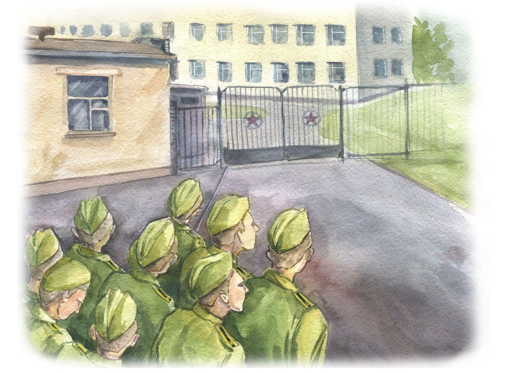 Интересно, как выглядит со стороны эта нестройная колонна стриженных под ноль пацанов в новой, необмятой форме? Перебрасываясь шутками, мы беззаботно шагаем, глазея по сторонам. Район выглядит как окраина – домов почти нет, много деревьев и зелени. Солнце пригревает всё сильнее. Новая, непривычная форма натирает. Плохо намотанные портянки начинают жечь ноги. Чемоданы с вещами оттягивают руки. Разговоры смолкают. Мы сосредоточенно пыхтим, потеем, терпим. Края пилоток темнеют от пота. Я собираю все силы чтобы выдержать до конца этот, казавшийся вначале таким простым, марш. Кто-то не выдерживает, выходит из строя, садится на землю, пытается перемотать портянки… Нет, только вперед, об отставших позаботятся сержанты. В моих сапогах пылает пожар, но не хочу выглядеть слабаком перед остальными. Осталось немного, уверен, нужно просто потерпеть, думать о другом, ещё чуть-чуть, ещё сотня-другая шагов…