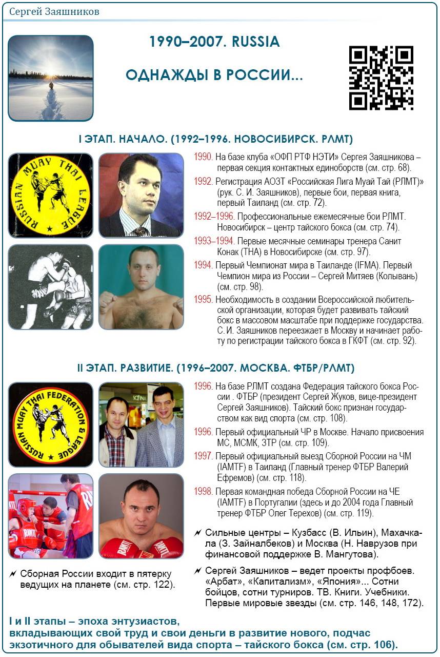 1992. Регистрация АОЗТ «Российская Лига Муай Тай (РЛМТ1)» (рук. С. И. Заяшников, см. данные об организации), первые бои (см. видео), первая книга, первый Таиланд.