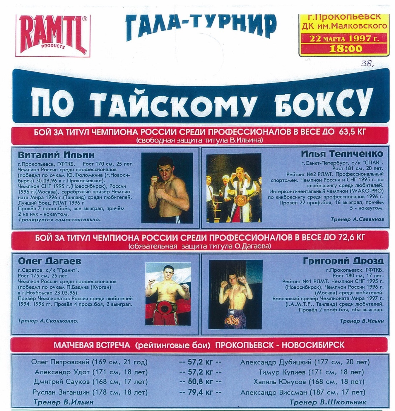 Профдебют в муайтай 07.12.1995 в новосибирском «ЦК», см. видео