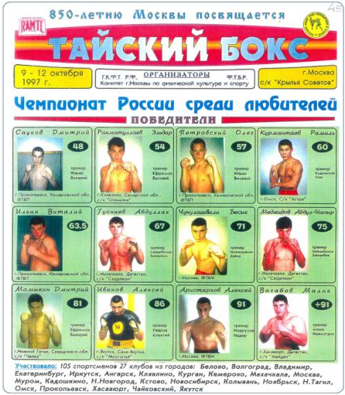 Чемпион России по муайтай среди любителей (Москва).