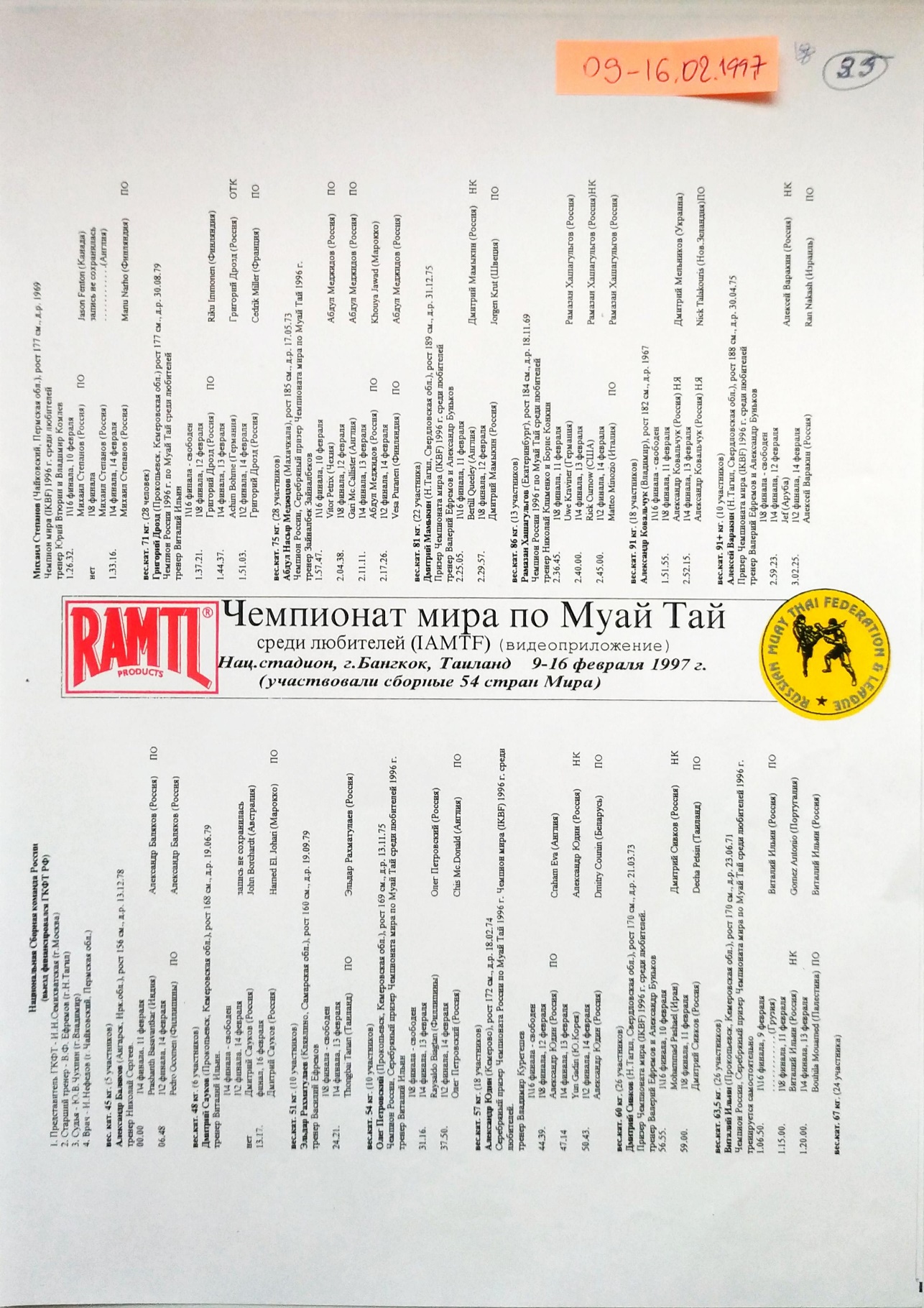 Бронза на ЧМ-1997 (Вице-президент ФТБР С. Заяшников. IAMTF. Бангкок. Таиланд) см. видео