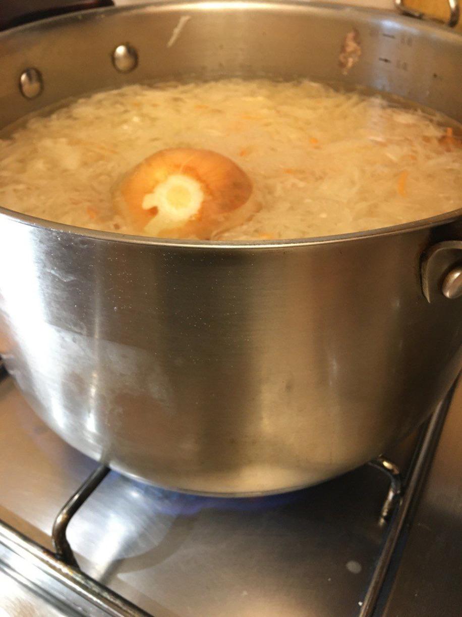Квашеная же капуста придает блюду ту самую изумительную кислинку, которую вы никогда не достигните в супе со свежей.