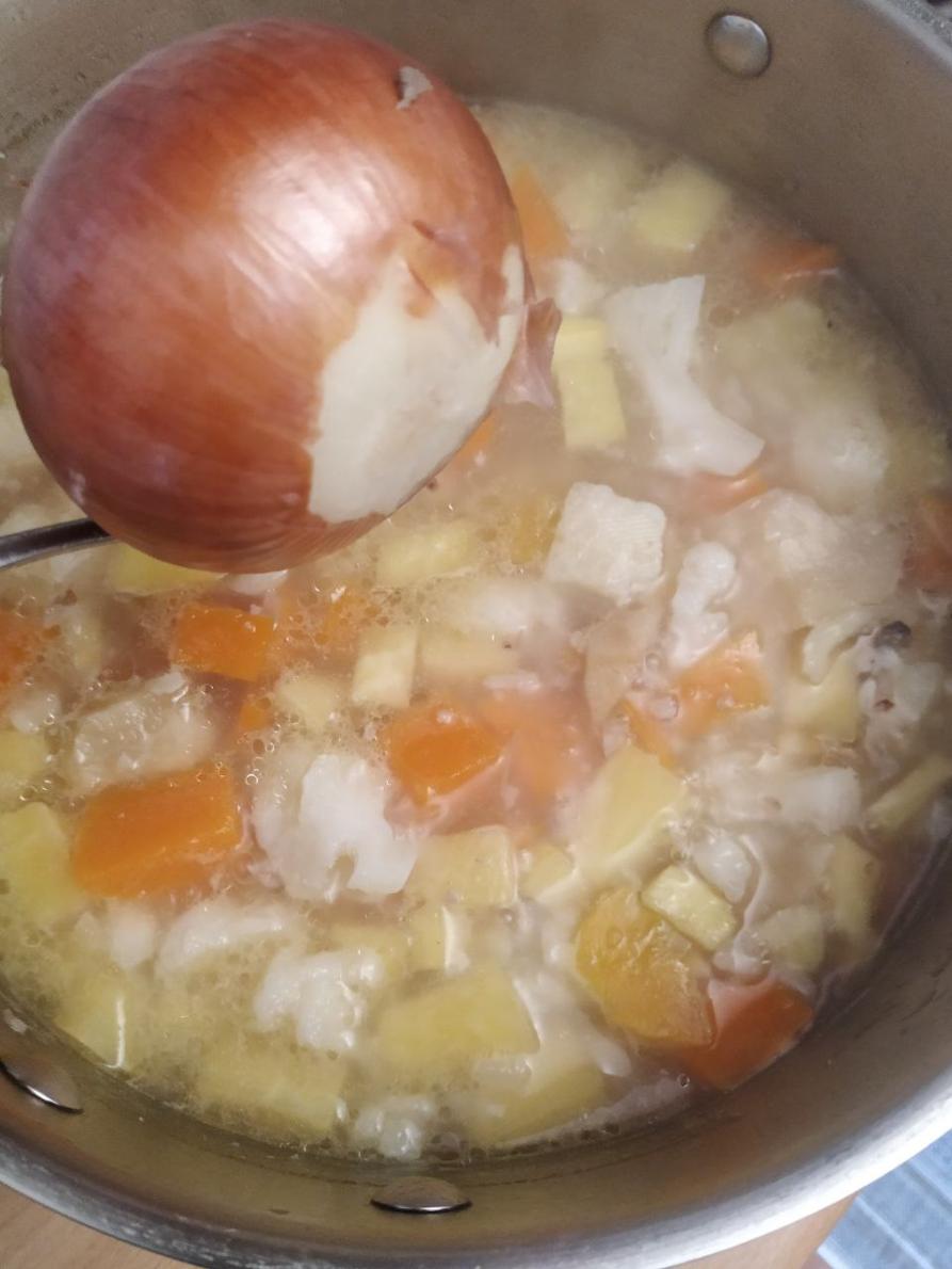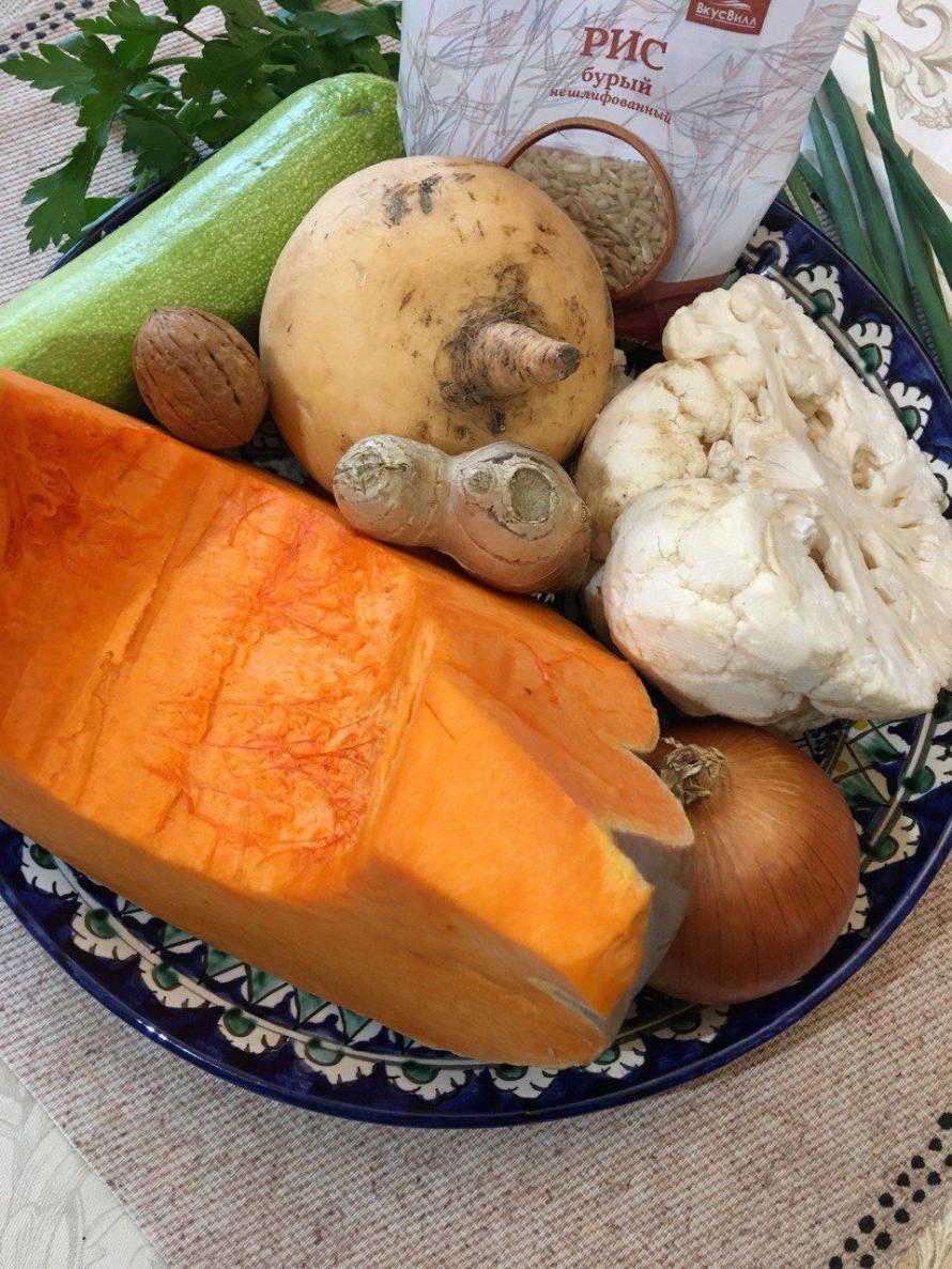 Быстрый суп – пюре с бурым рисом, тыквой, репой и цветной капустой.