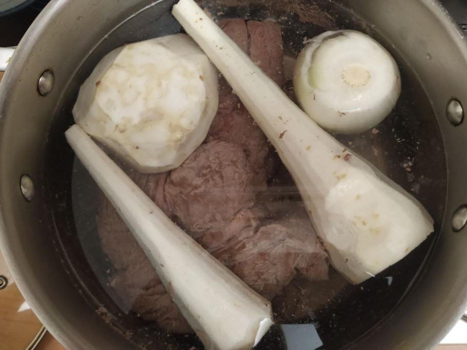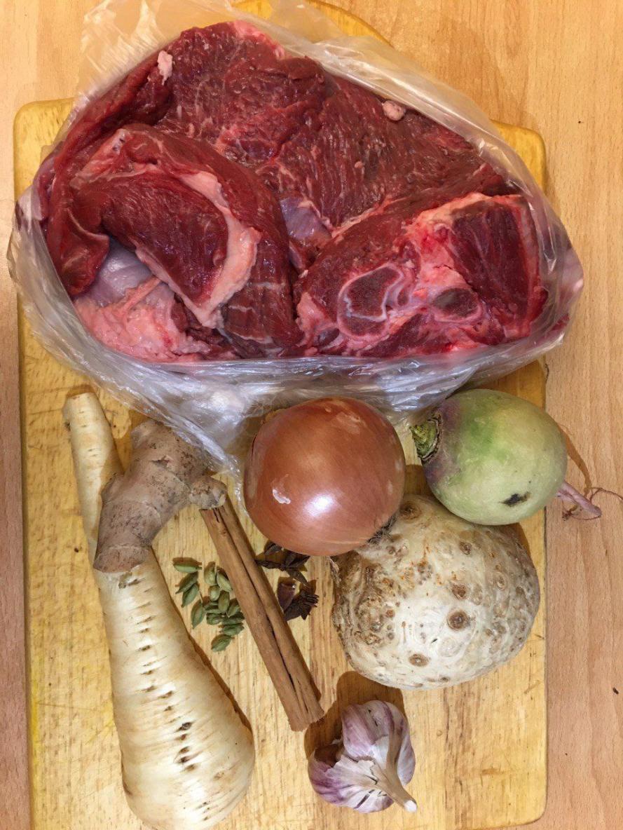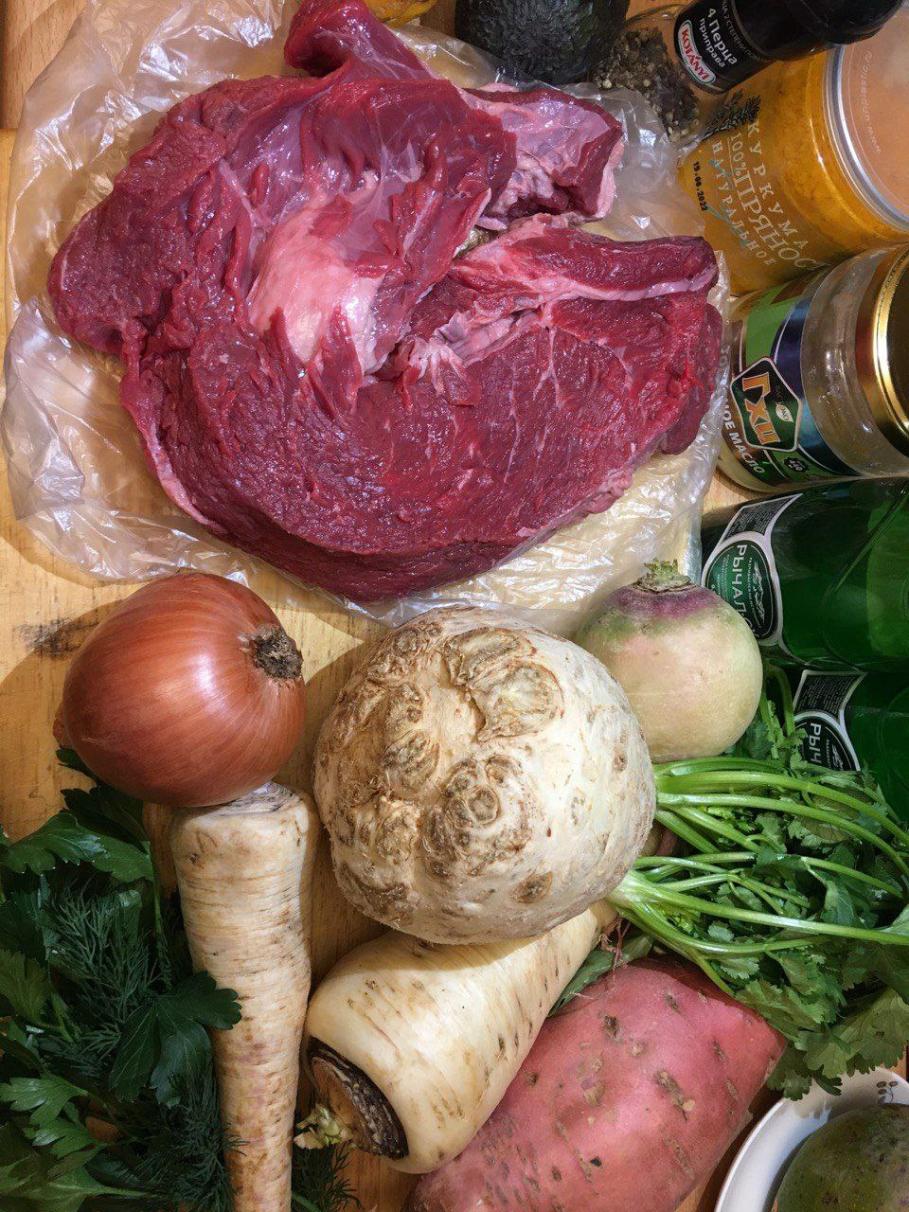 – ОВОЩИ. Еще через час закладываем белые корнеплоды (корень сельдерея, петрушки и пастернака) и варим до готовности полчаса-час.