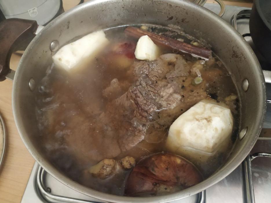 Первый бульон сливаем сразу после закипания, далее меняем воду и варим на тихом огне 2-3 часа (или дольше) без крышки, добавляя кипятку при вываривании. Вообще, по классике, это важно, не закрывать кастрюлю крышкой, иначе бульон будет мутным, но я часто из-за скорости иду на компромисс – накрываю крышкой не полностью. И надо постоянно собирать с поверхности пену, что тоже не всегда успеваю, т.к все приготовления у меня идут во время работы на компьютере, так сказать «прицепом» к работе.
