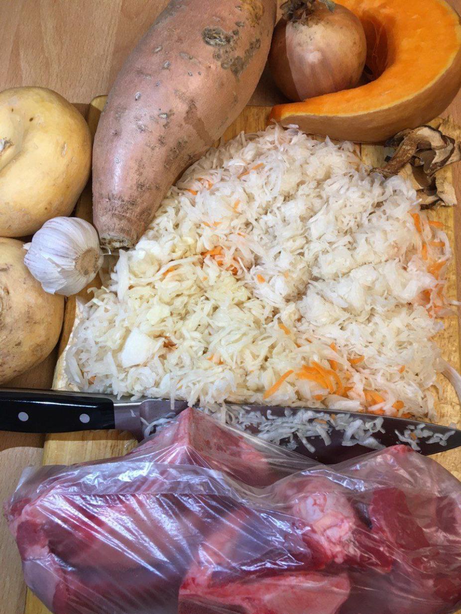Ингредиенты: капуста свежая, тыква, репа, куркума, красная чечевица, специи (бадьян, гвоздика, розмарин, перец, зира) в мешочке.