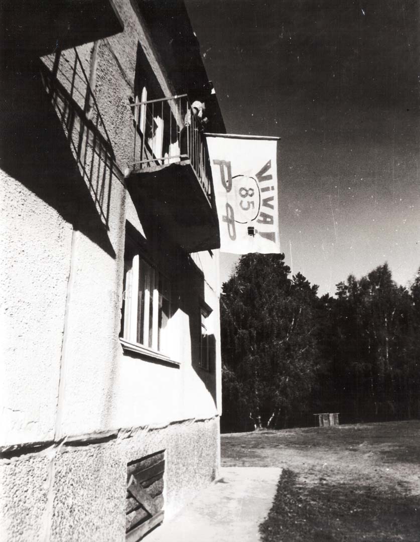 С начала заселения прошло достаточно времени, чтобы студенты обжились, пообвыкли. И вот мы перед двухэтажным зданием лагеря. «С новым годом!» – кричал со стены дома красочный плакат. Совсем свеженький. Не доверяя своим глазам, мы огляделись по сторонам: стоящие вокруг деревья, казалось, с недоумением спрашивали, какой, простите, новый год? Ведь сейчас бабье лето! Двадцать градусов выше нуля!