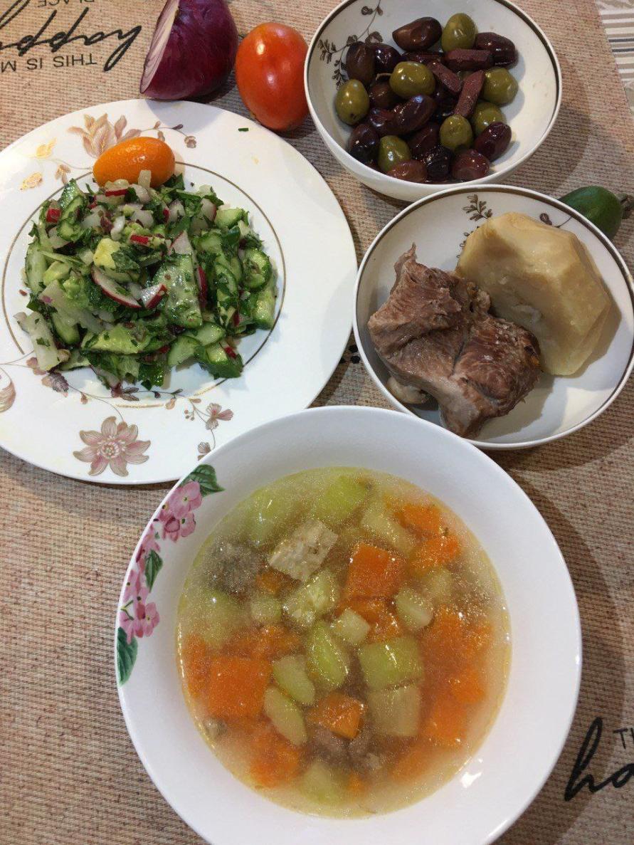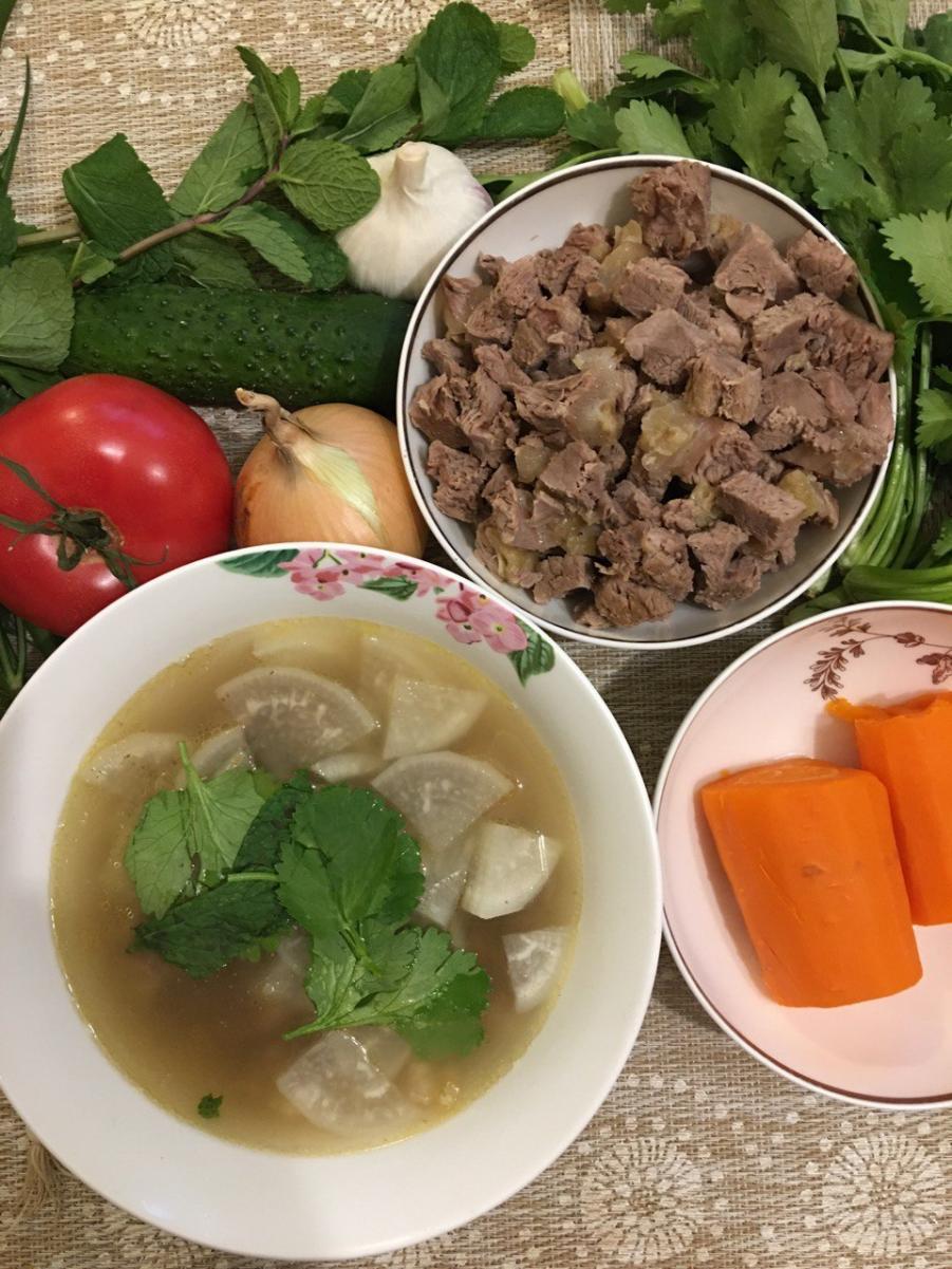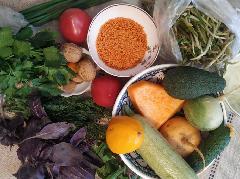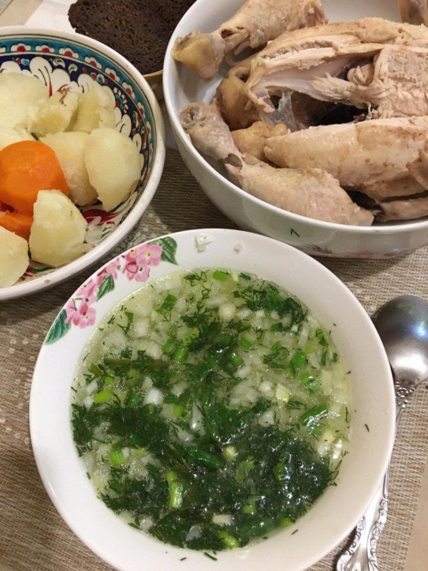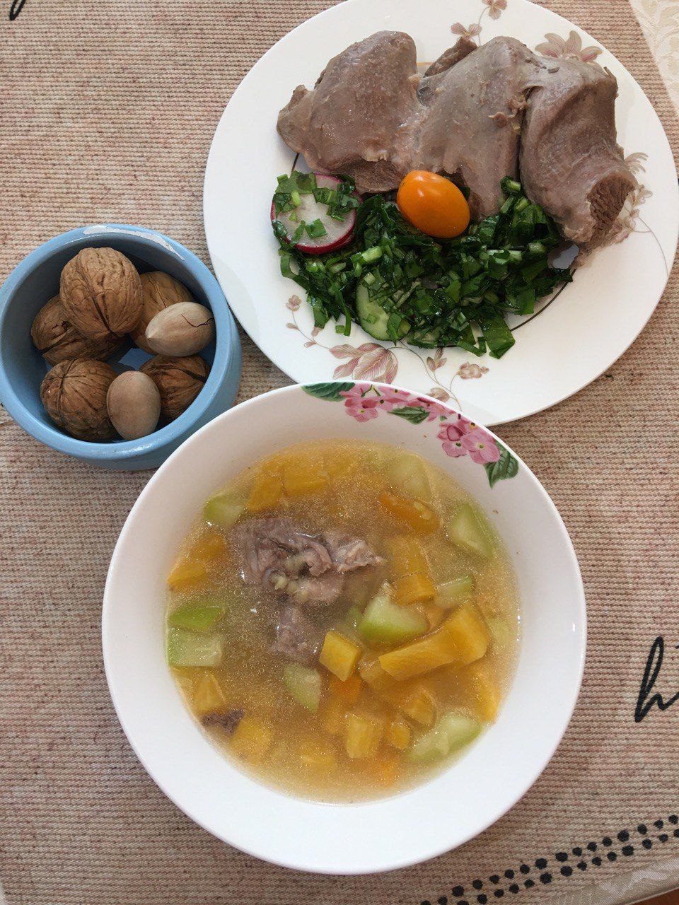 Вареный казылык, остатки самсы и окорока барашка, зелень – вкусно!