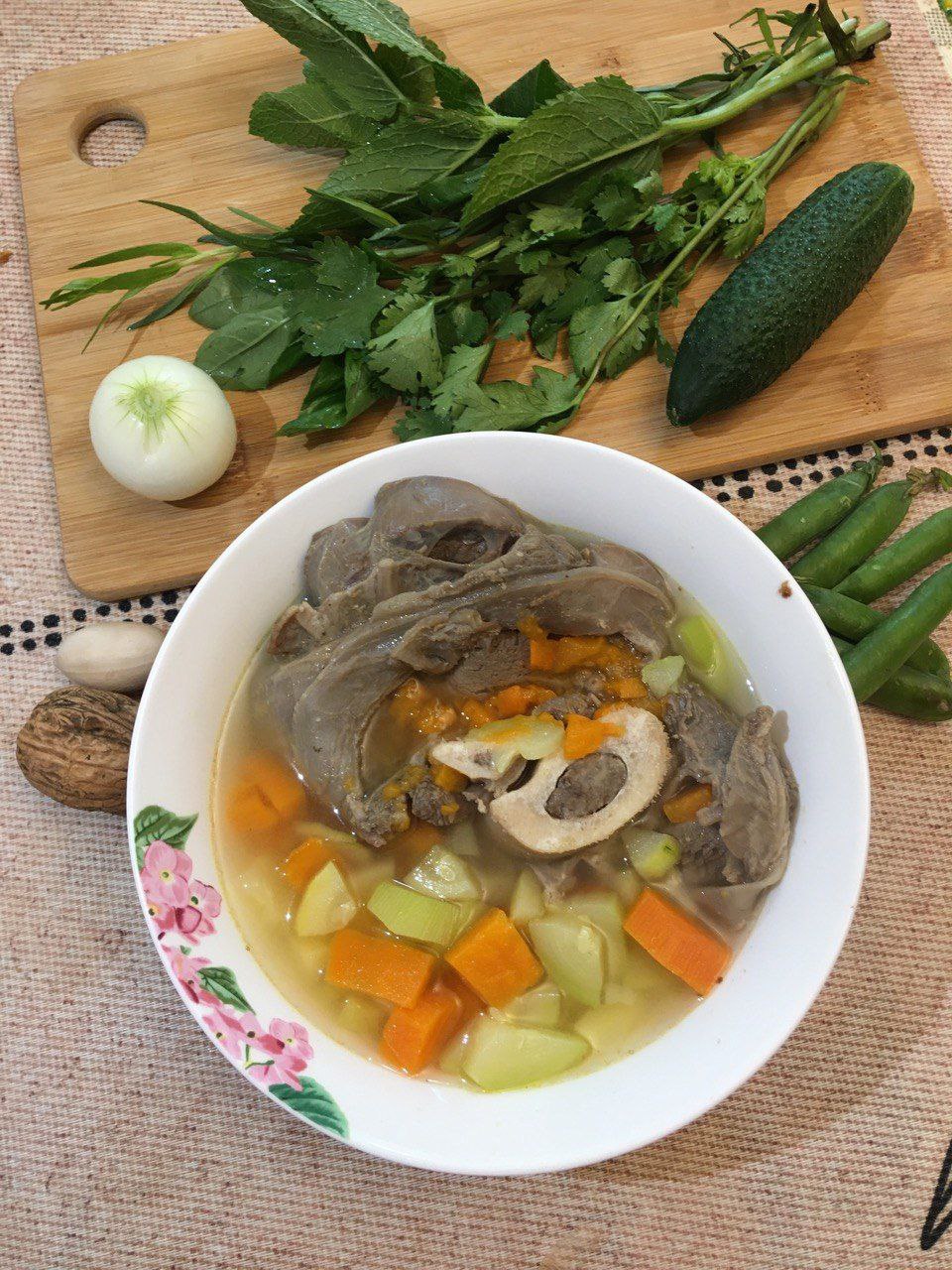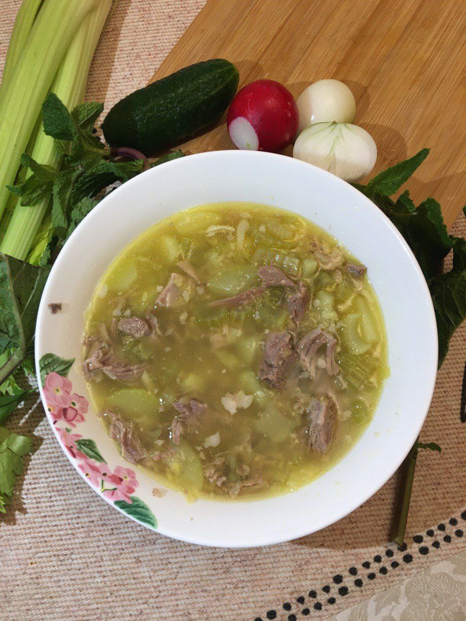 Суп на бульоне из казылыка с тыквой, кабачком, стеблем сельдерея