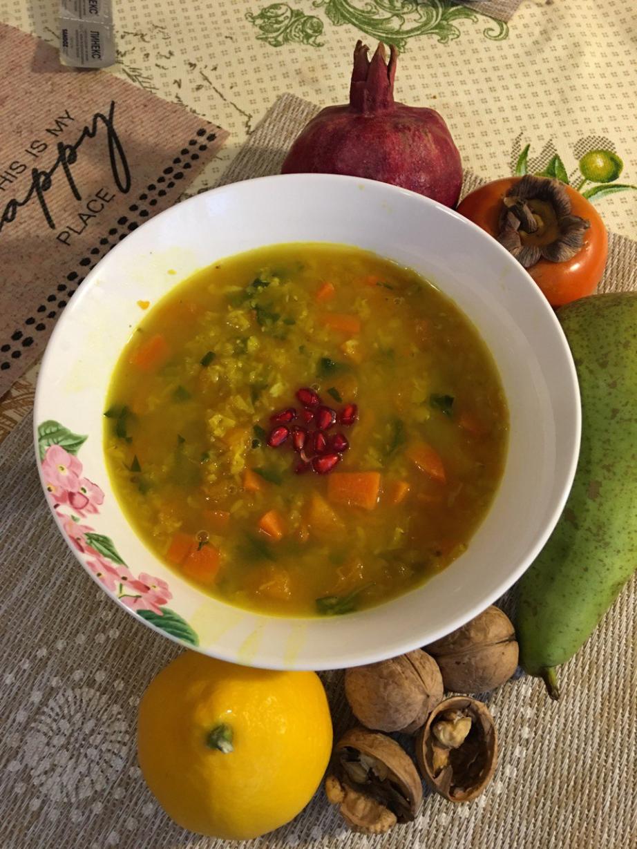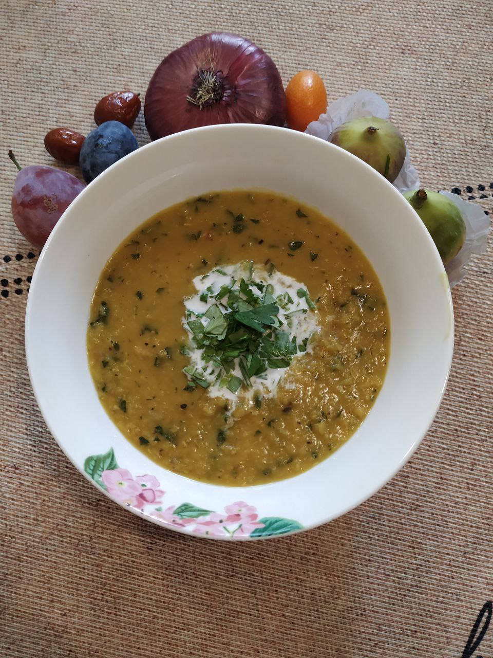 Суп из красной чечевицы с куркумой и кокосовым молоком