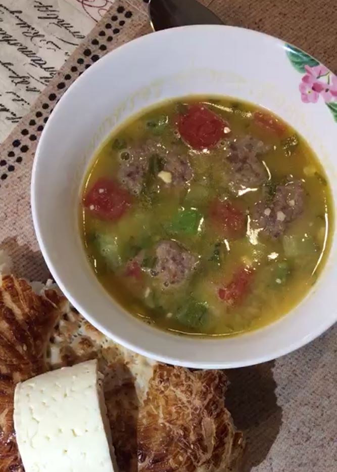 3. Быстро обжариваем на сковороде (на пергаменте) фрикадельки, добавляем, и о чудо!Едим роскошный суп! Мишлен отдыхает!