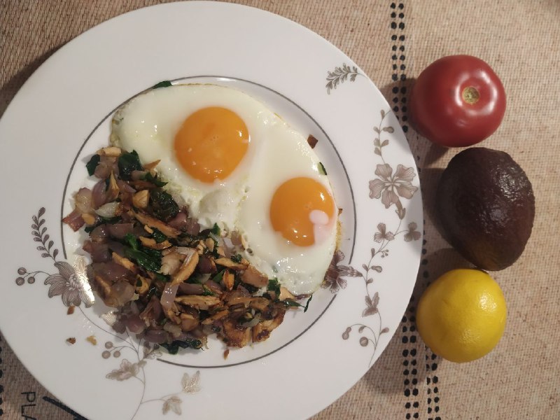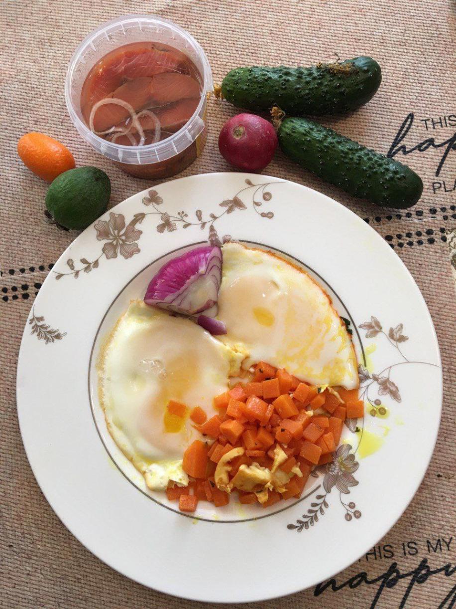 Яичница с тыквой и куркумой на топлёном сливочном масле ГХИ и подкопченая кета (Камчатка)