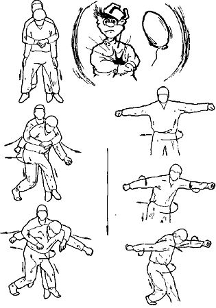– расслабляйтесь, поддаваясь противнику, убирайте от него ожидаемые точки опоры и сопротивления, тогда он потеряет равновесие сил;