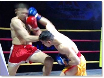 В тайском боксе применяется редко из-за опасности нарваться на встречный удар коленом.