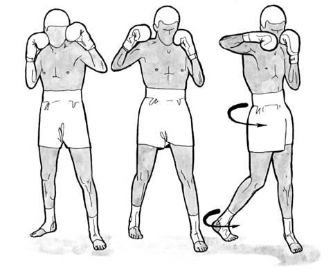 Если нужно сблизиться с противником, вес тела следует перенести на левую ногу. Тогда вращение туловища произойдет в левом тазобедренном суставе. Если же нужно отойти от противника, боксер вес тела перемещает на правую ногу, и вращение происходит в правом тазобедренном суставе.