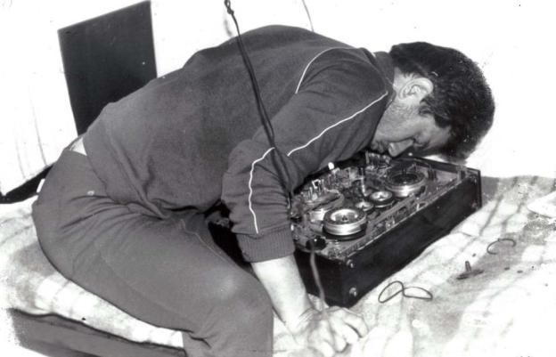 На одном столе стоит чайник и еда будущего инженера – банка с вареньем, хлеб и сало (масло или ближе к стипендии – маргарин). Другой стол почти круглосуточно занят разобранным «мафоном» и "радио-патологоанатом". "Радиогубитель" поставил уже диагноз «вскрытие показало: "мафон" умер от вскрытия» бьется над оживлением своего сокровища.